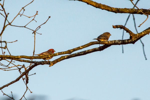 House Finches often travel in mated pairs
