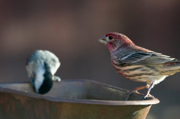 House Finches often travel in mated pairs