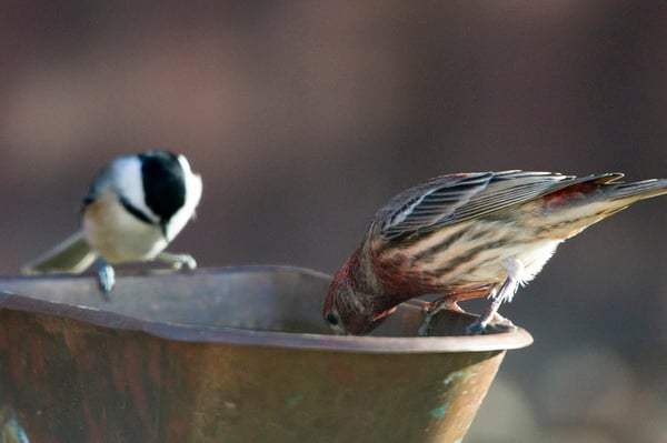 House Finches often travel in mated pairs
