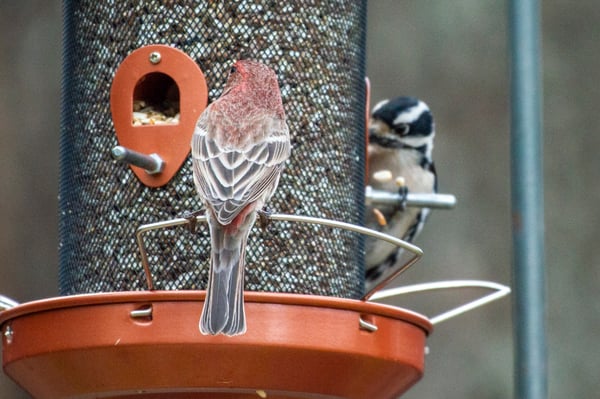House Finches often travel in mated pairs