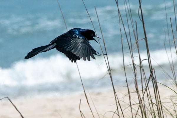 Boat-tailed Grackles can swim for a little bit