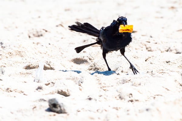 Boat-tailed Grackles can swim for a little bit